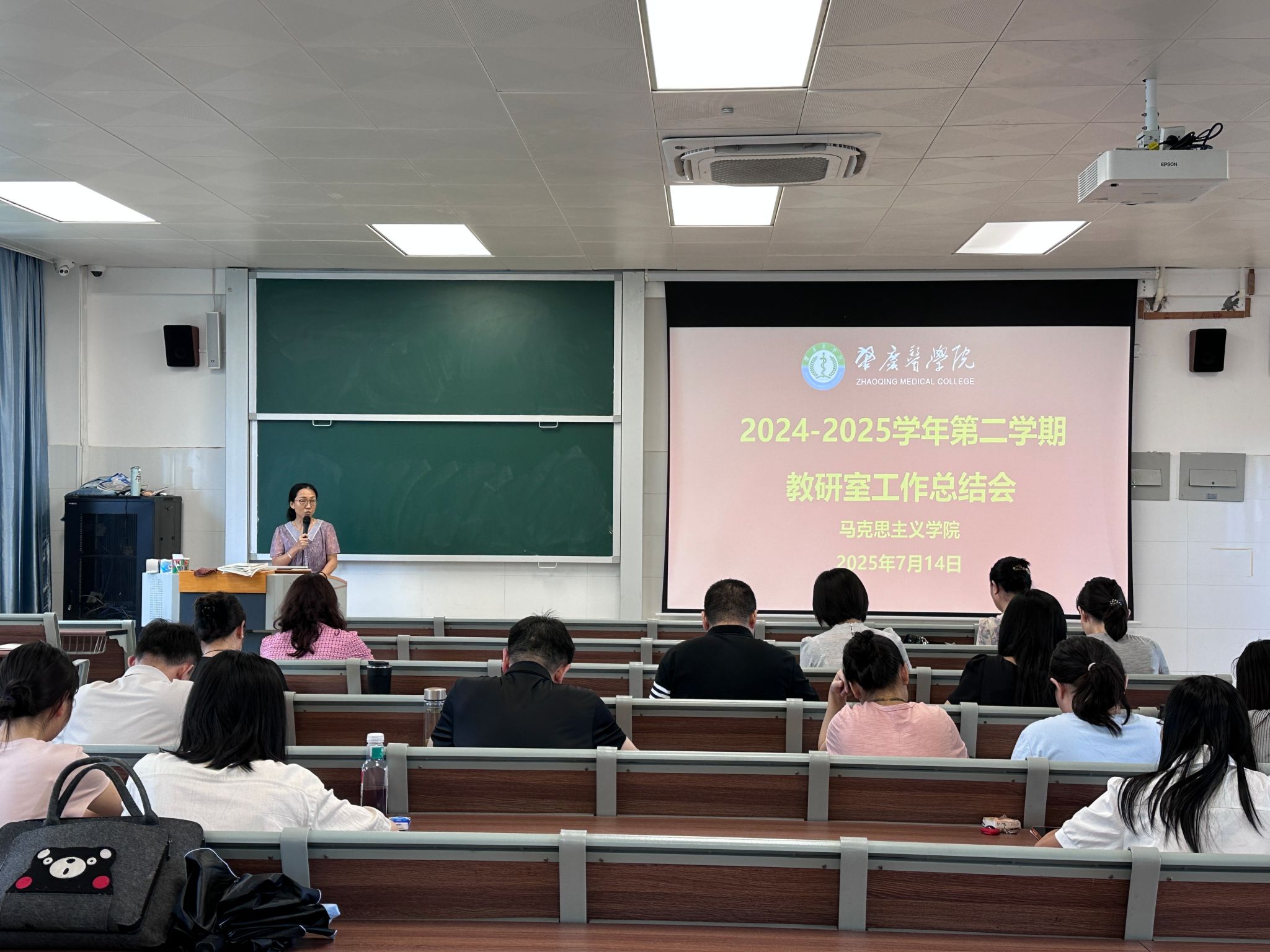 思想道德与法治教研室主任周宏菊从教学、科研、实践和社会服务四个方面进行了详细汇报。在教学方面,教研室保质保量完成了《医学伦理学》《卫生法规》等课程的教学任务,积极推进线上线下混合式教学改革。在实践教学方面,组织师生前往叶挺独立团团部旧址纪念馆、广州黄埔军校旧址纪念馆等实践教学基地开展红色教育实践活动。教研室青年教师积极参与社会服务,如肇庆市“青年心向党,奋进百千万”党课青年说活动。但也指出,教研室在科研方面仍显薄弱,教师发表的高水平论文较少,教学层面有待进一步提高。