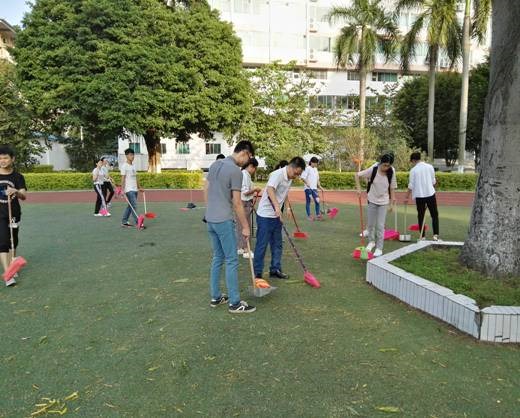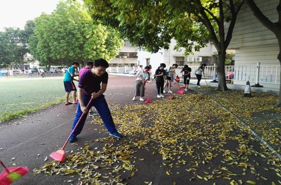 中医系支部副书记庄百鹏带领员工校园大清洁