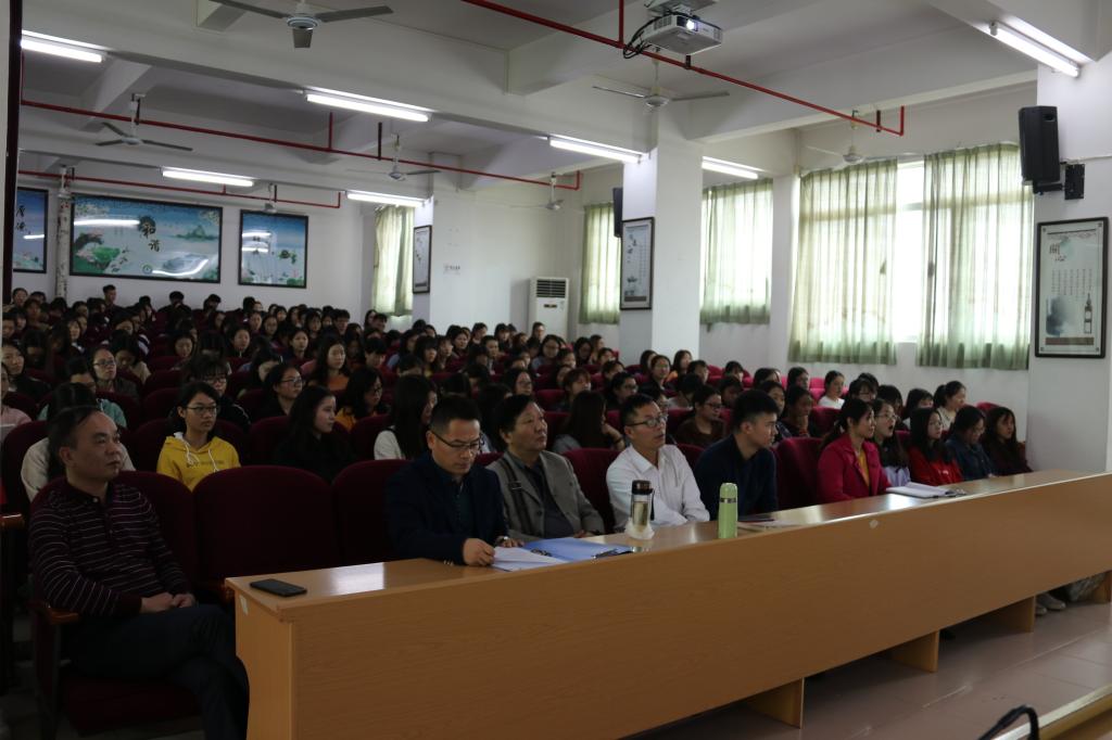 3月27日下午,公司党委书记谭锦添同志在端州校区14楼学术报告厅为师生讲授主题为“港澳与内地融合共享发展机遇”的新学期第一堂思想政治理论课。公司党委委员教务处刘其礼处长、思政部、护理系老师及护理系200多名员工参加听课学习。