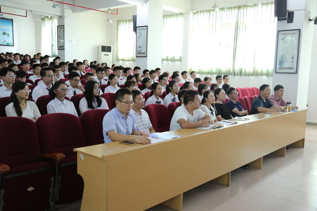 壮丽70年,奋斗新时代,今年是新中国成立70周年。为深入学习贯彻习近平新时代中国特色社会主义思想和党的十九大精神,隆重庆祝新中国成立70周年,激发全校师生爱国热情,引导广大教师切实落实立德树人的根本任务、培育担当民族复兴大任时代新人。9月27日,校领导为临床医学系和医学技术系员工开讲新学期第一堂思想政治理论课,教务处、思政部等有关部门负责人以及教师们参会学习。