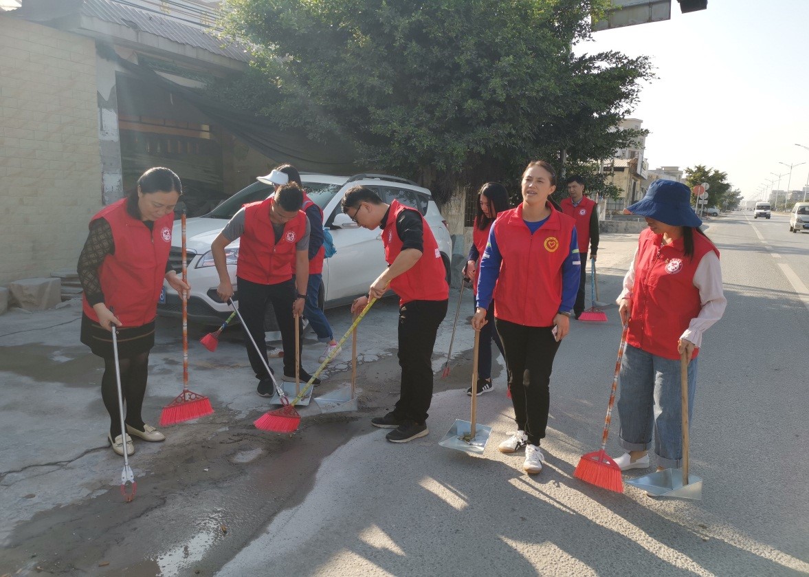 11月20日下午,思政党支部组织支部党员到公司包联高要金渡镇西头社区开展学雷锋志愿服务活动,共建文明城市工作。活动中,支部党员与高要金渡镇西头社区工作人员一起,深入农民家中座谈交流、发放社会主义核心价值宣传资料,一起打扫街道卫生、修剪花草,清理垃圾池等。虽然天气寒冷,党员老师们身先士卒、发挥不怕脏不怕累的雷锋精神、发挥了党员模范带头作用,劳动场面有说有笑、干劲十足、热火朝天。