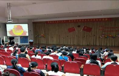 在举国上下深入学习中国共产党十九大精神之际,为深入学习宣传“十九大精神”,学习党章党规,纪念伟大的中国共产党走过的光荣历程,思政部党支部、中医系党支部、系团总支在2017年11月4日晚于鼎湖校区学术厅举办“青春学习十九大,坚定信念跟党走系列党知识竞赛”活动,出席本次活动的有思政部党支部副书记庄百鹏、中医系团委书记张颖、系部老师和鼎湖校区17级部分新生。