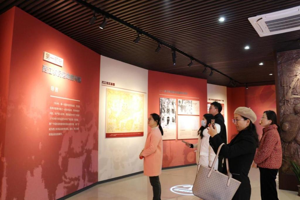 图一:思政部党支部党员在江美乡农民协会史迹陈列馆前合影